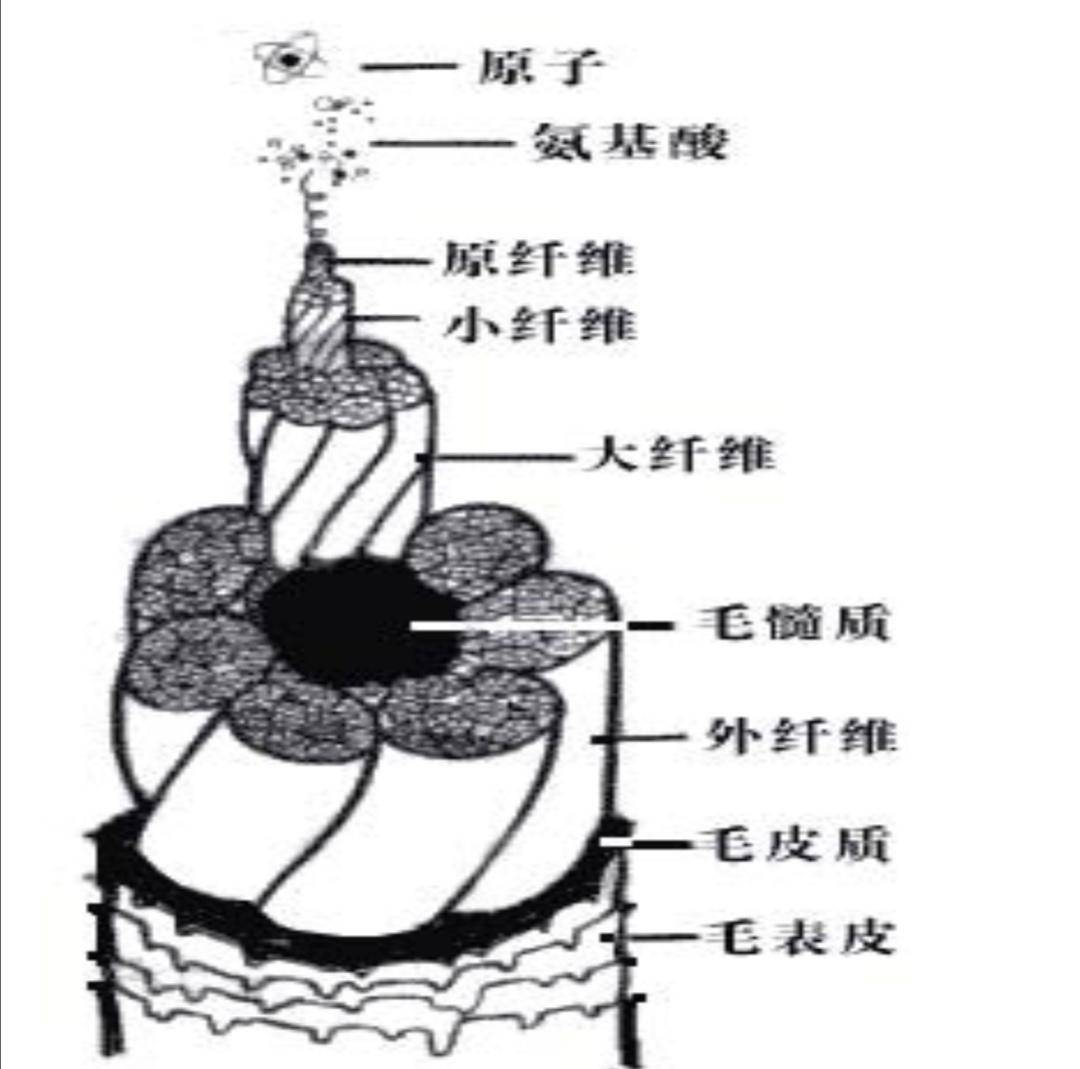 这个问题看似生物其实物理。我们的头发实际上是一个形状奇怪的死细胞,主要成分是角蛋白。其微观结构如下: