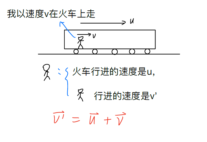 大家可能觉得图中红色的式子非常自然,这正是人们使用了很久的伽利略变换。