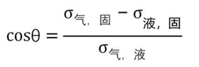 不难理解,σ气,固倾向于使液滴铺展开,σ液,固倾向于使液滴收缩,在图示润湿(θ<90°)的情况下,σ气,液倾向于使液滴收缩。接触角定义为σ液,固和σ气,液之间的夹角。简单的力学分析可得: