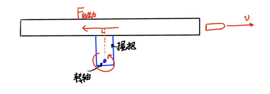 如上图所示:子弹出膛以后会在枪管处产生一个方向与子弹出膛方向相反的力,这个力就是后坐力。图中蓝色的方块是握把,人总是试图用手握住它让它固定以保证射击稳定,我们不妨假设人牢牢的握住了握把,也就是忽略后坐力引起的握把的位移,在这种情况下,握把相当于一个转轴。而后坐力会产生一个相对于这个转轴的力矩,那么就不难得到后坐力会让枪体逆时针旋转的结论。而这种逆时针的旋转就会导致枪口的抬起。