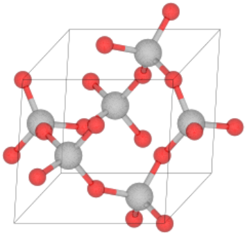 二氧化硅的晶体结构(白球是硅原子,红球是氧原子)