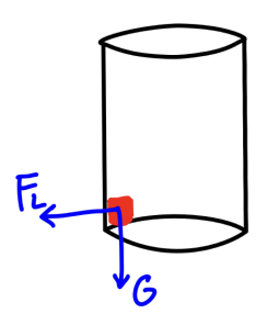 上图给出了骰子的受力情况,图中的FL就是离心力。我们可以看到,它的存在让骰子额外地受到一个平行于水平面的力,也就等效于改变了重力的方向。这个力在摇晃水杯的问题中是让液面倾斜的力,在这里就是让骰子叠起来的状态能够稳定存在的力。不难想象,在一定微扰下,部分骰子离开底面飞起来,FL足够大时,也就是让骰子做转动的速度足够快的话,让骰子被这个离心力吸到紧贴侧壁并叠起来是有可能的。
