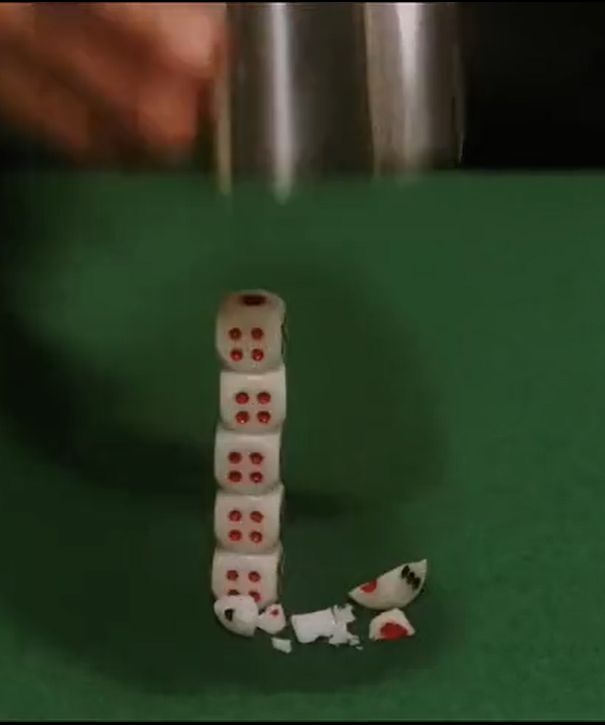 玩骰子的时候,很多电影中像赌神,骰子在盖上盖子后,用力甩,摇,如何使起叠成一列,这个可以实现吗?如果可以需要什么力度?