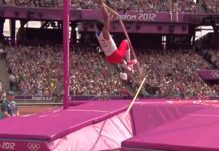 像这样的断裂被称为杆状物质的级联断裂现象。事实上,不仅仅是粉笔和意大利面,在奥运会的赛场上也出现过这样的断裂。
