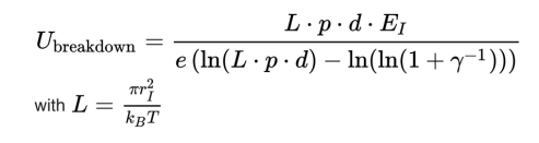 这个问题非常的复杂,这个电压与需要击穿(让气体导电)的气体厚度d,气体的压强p、温度T、气体分子的种类等都有关系。这个式子长这个样子(是的,非常复杂非常麻烦):