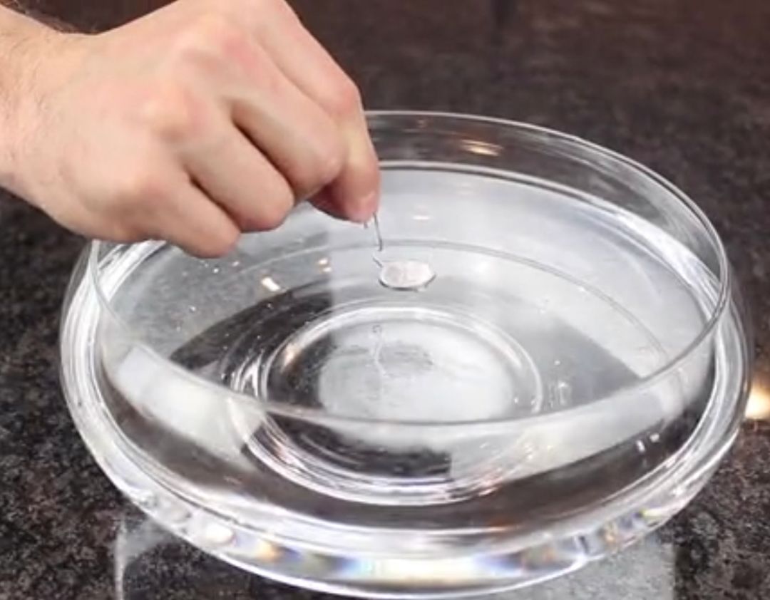 首先我们先来看一下水的张力是如何让硬币漂浮在水面上的:
