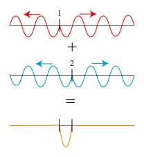 当两个满足干涉相消条件的波发生复合时,如下图: