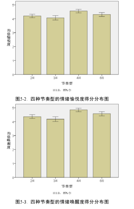 心理学研究者探究了几种典型节奏型的音乐对个体主观音乐情绪的影响和个体大脑神经影像活动的变化,实验结果表明:不同的节奏型激活和抑制了大脑的不同区域,只有 4/4 拍节奏型音乐激活双侧辅助运动区和双侧颞上回,4/4 拍节奏型音乐诱发了最高的唤醒度和最高的愉悦度。