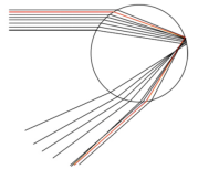 从以上示意图可以看出,其偏差最小对应的角度范围内的光线是最集中和明显的,更加直观一点,可以画2D示意图,如下: