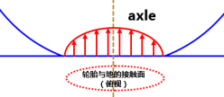 我们先从静止的车轮讲起,此时车胎内气压均匀,但由于接触面积的不同导致支持力的分布如图: