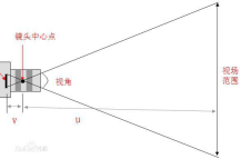 如下图,其中u为物距,v为像距,f为焦距。对于A点当光线通过透镜C点和O点的像叠在一起时可以清晰成像。不难想象焦距f变大时,A’点将后移,此时成的像更大,但对于相同尺寸的成像元件来说其视场角变小。
