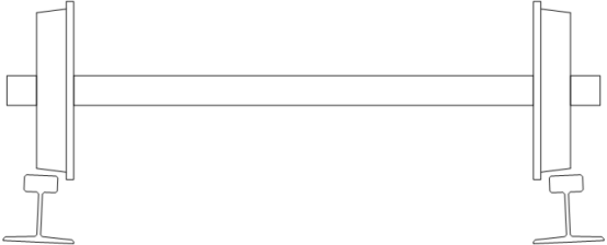 解释火车通过道岔变轨之前需要了解火车车轮的构造,见下图。火车车轮不是圆柱形的,而是近似于圆台形,并且轮缘在内侧。
