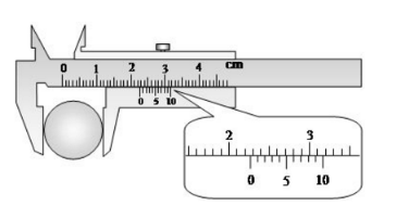 如图所示,被测小球的直径实际长度是游标的刻度0所指的位置。但这一位置位于主尺的两个刻度之间,即其直径在2.2cm到2.3cm之间,只能精确到1mm。十分度的游标卡尺可以提供0.1mm的精度。度数时先读出0刻度左侧的数值,然后再看游标第几条刻度与主尺刻度重合,乘以0.1mm加到主尺度数上即可。