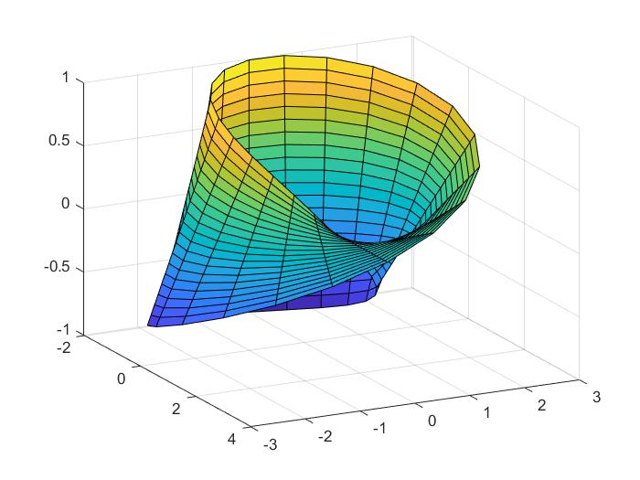 ,这其实就是把莫比乌斯环从中间剪开后得到的新图形的曲面方程,我们发现