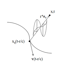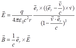 首先从最简单麦克斯韦方程组出发,变化的电场产生磁场,单个电子如果能够产生变化的电场,即可产生磁场。当单个电子静止时,静电场不发生变化,不产生磁场。电动力学的结果表明,运动的带电粒子在加速时产生电磁场,辐射电磁波,辐射场横向,电场和磁场与粒子到场点方向(er)垂直,且磁场与电场互相垂直,如图所示。