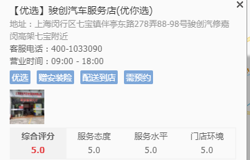 骏创汽车维修既是天猫养车的线下合作店、也是京东的线下优选门店。