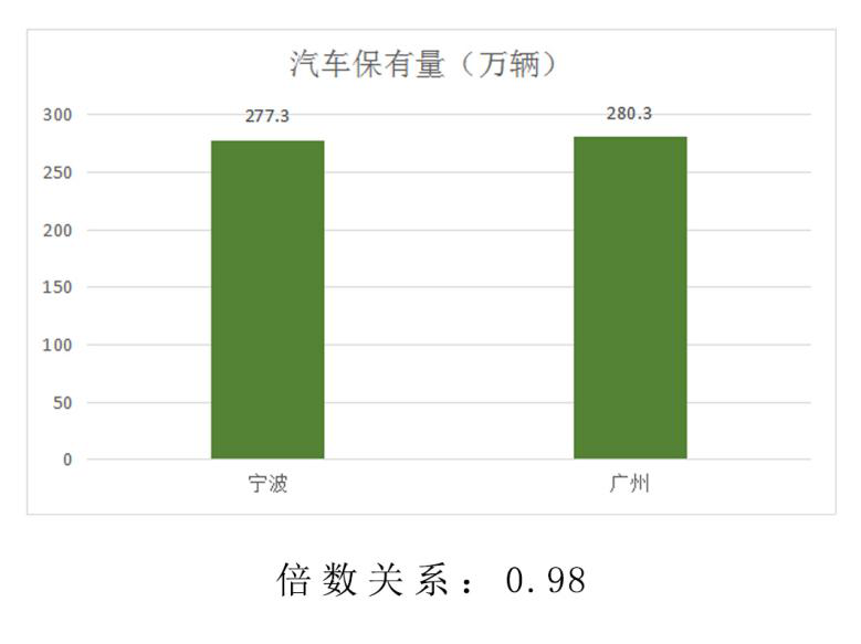 2019年,宁波的汽车保有量(排名15)为277.3万辆,这一数字,与广州(排名14,280.3万辆)差距并不大。