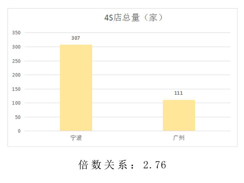 但是,在4S店总量上,宁波共有307家,而广州仅有111家,保有量差距不大的情况下,宁波的4S店保有量却是广州的近3倍。(该数据由“58汽车”查询所得)
