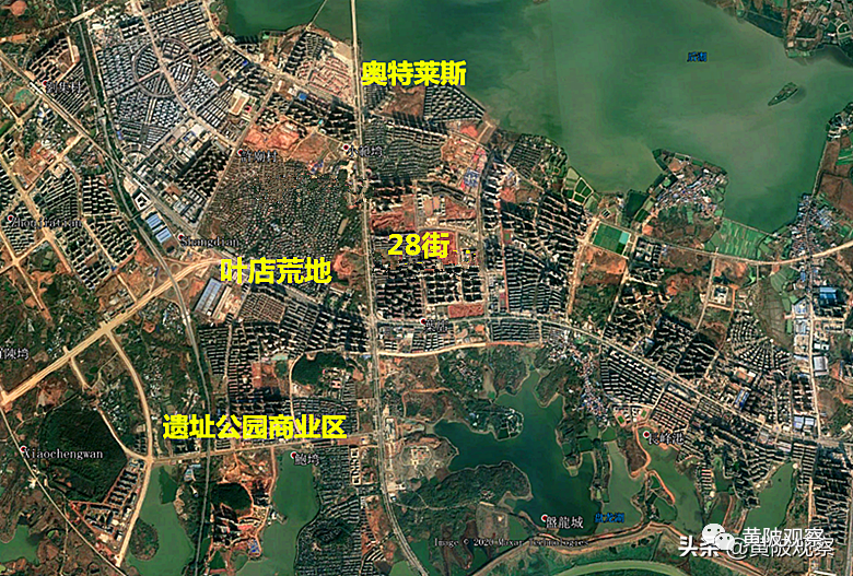 盘龙大道的情况,需要分为两个部分来说明。叶店以南,由于遗址公园的存在,建筑高度受到限制,对商业体的吸引力显然不大(商场只能修2-3层的情况下,大型商业体根本就不会来,所以这么多年,遗址公园对面的商业地块一直找不到商家开发),此区域的商业开发就需要另辟蹊径,搞精品化,特色化的商业才能有出路(比如,利用盘龙城遗址这个IP,搞点文物古迹鉴赏之类的文化产业)下图中,各位可以看到盘龙大道西侧还有大片待开发的商业用地。