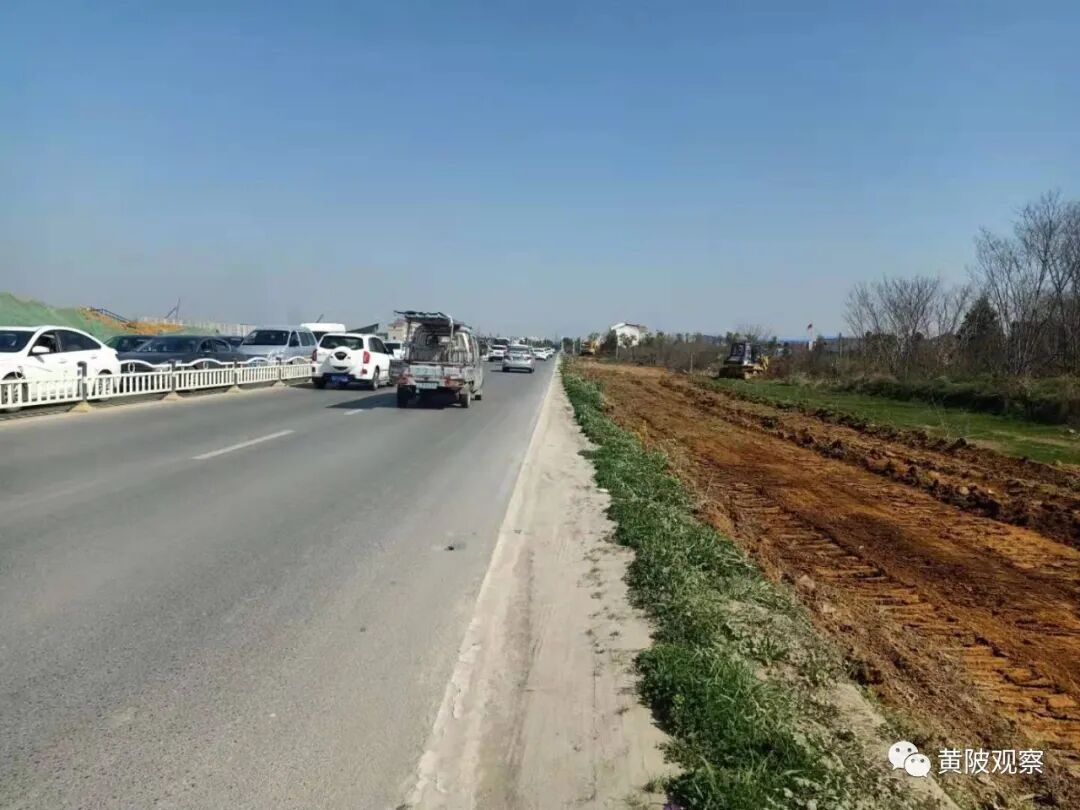 去年12月份,位于318国道北半侧,属于黄陂区部分的路面开始拓宽,在现有机动车道的外侧增加了一个车道,目前路基已填起来大半。