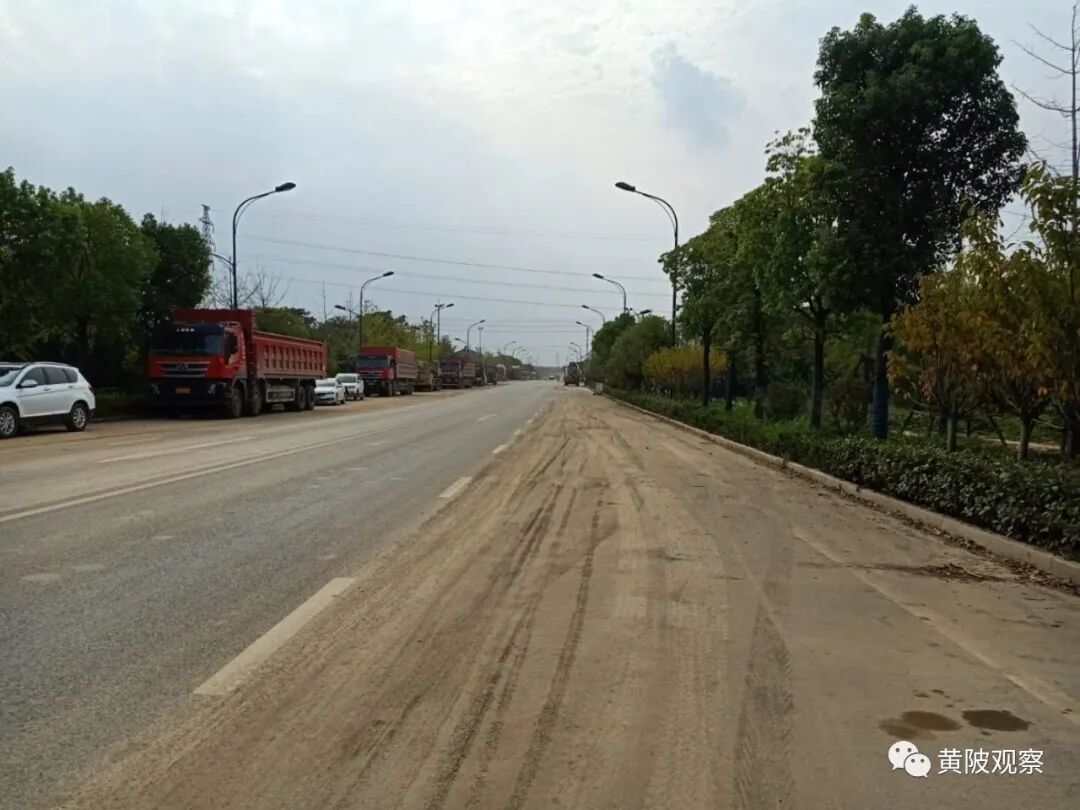 02钓台道西段,从黄孝路至京九街,在小编的记忆里,最开始是水泥路面,没有非机动车道和人行道,好像是16年左右重新翻修过,路面刷沥青,两侧增加绿化隔离带和非机动车道。刚翻修完成的时候,路面黑亮,绿化带郁郁葱葱,小编当时从那里经过的时候,还赞叹说,五里村的环境比城区都好。几年后,当我再从这条路经过的时候,简单都不敢相信自己的眼睛,钓台道都成了后八轮的停车场,马路边缘堆积了寸的泥巴,有车经过的时候,整个马路都快被灰淹没了▼马路上停满了大车,路上的灰吓死人
