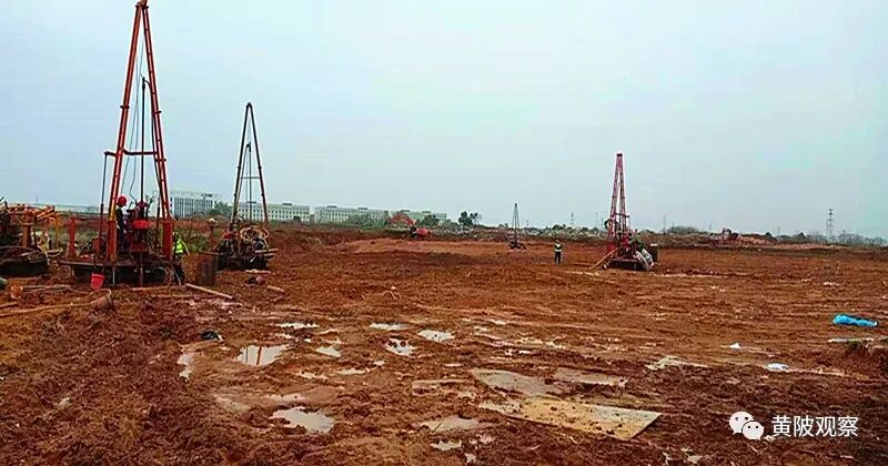 现场看,智能制造园区内有多台打桩机正在施工,面积不小,东到创业中路,南边是前川中环线,西边不远处是黄孝大道,北面是已建成的规划道路。