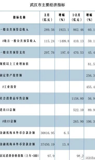 下面让我们再看看武汉全市1-2月的经济指标吧