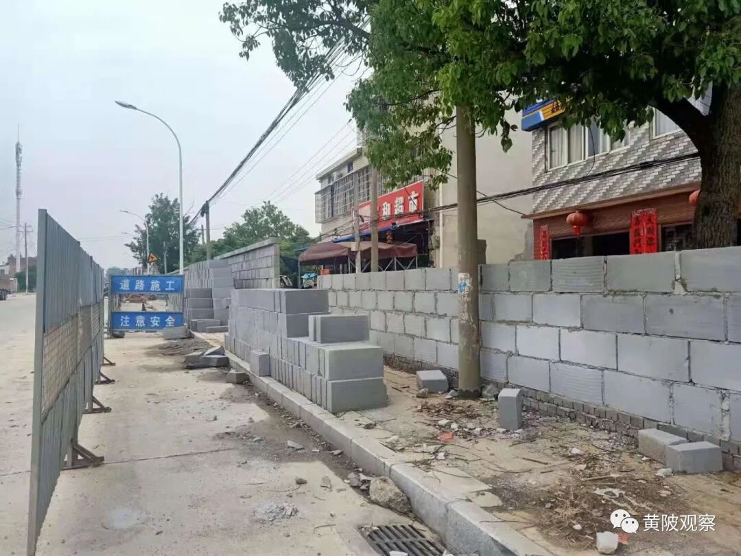 现场来看,临街还有一排民房,有工人正在民房和街道之间修建围墙(但会给每家留一个出口),图片如下: