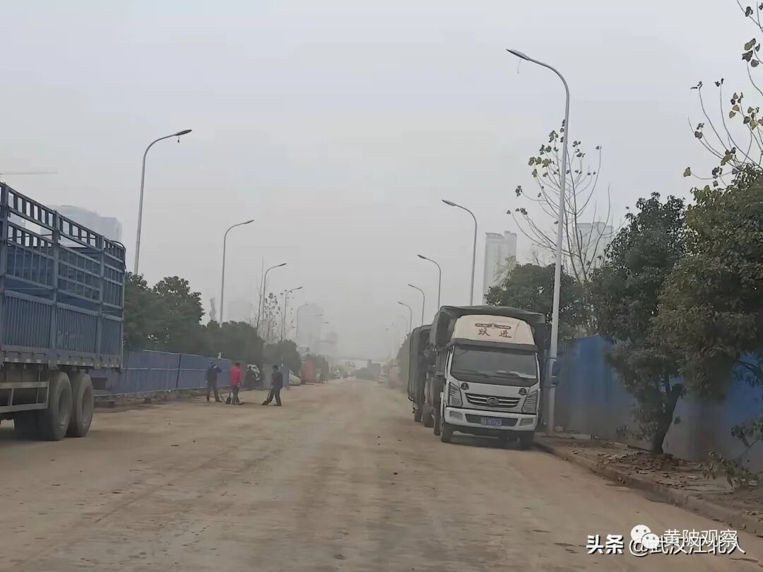 小编从新十公路那个著名的烂尾小区-德大浅水湾门口右转进入无名路,这条马路为双向4车道,水泥路面上满是泥土,显然是渣土车所为,路上虽然有几个工人在清理泥土,但也只是意思意思而已,大块泥巴铲到一边,碎石子和黄土则继续留在路面上,有车辆驶过都会带起灰尘漫天,汉口北真是个“光灰”的地方(C管在哪里)