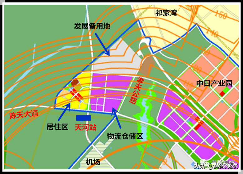 02随着天河机场第三跑道即将开始建设,第四和第五跑道进入规划日程,天河街可能又要经历一次搬迁了,新的居住地位于陈天大道以北。黄陂2035规划图上已清楚地标明了新天河镇的位置,位于新建的,连通孝感市临空产业园和黄陂区临空产业园的陈天大道和汉孝城际天河站以北,西邻童家湖,北接祁家湾。
