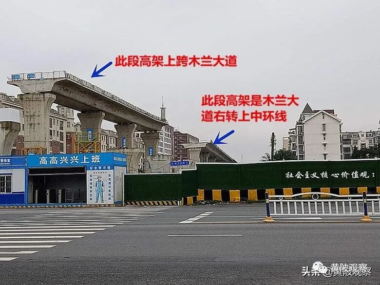 最新进度:西段需要下穿黄孝公里和武麻铁路,工程虽已开工,但进度不明。高架段将跨越钓台道和川龙大道,北段桥面已建成,跨越川龙大道的高架正在建设桥面中。