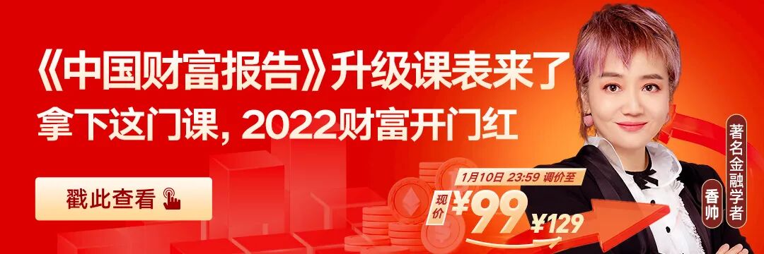 为你推荐香帅老师的《中国财富报告》,今天,这门课程正式升级,课程将在原基础上再升级7讲。这份报告每年发布一次,它的使命是为每个中国家庭提供一份财富解决方案。当你准备买股票、换工作、买房产、换城市的时候,它都可以给你启发和参考。