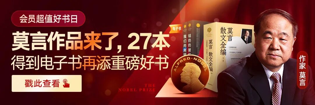 中国首位诺贝尔文学奖得主莫言的作品来了!本周得到电子书一次上架莫言27本作品,除了小说,还囊括了剧作、散文、演讲等作品,可以让你对他的创作历程、人生经历以及面对文化和社会问题的思考有更加全面的了解。快快阅读起来!