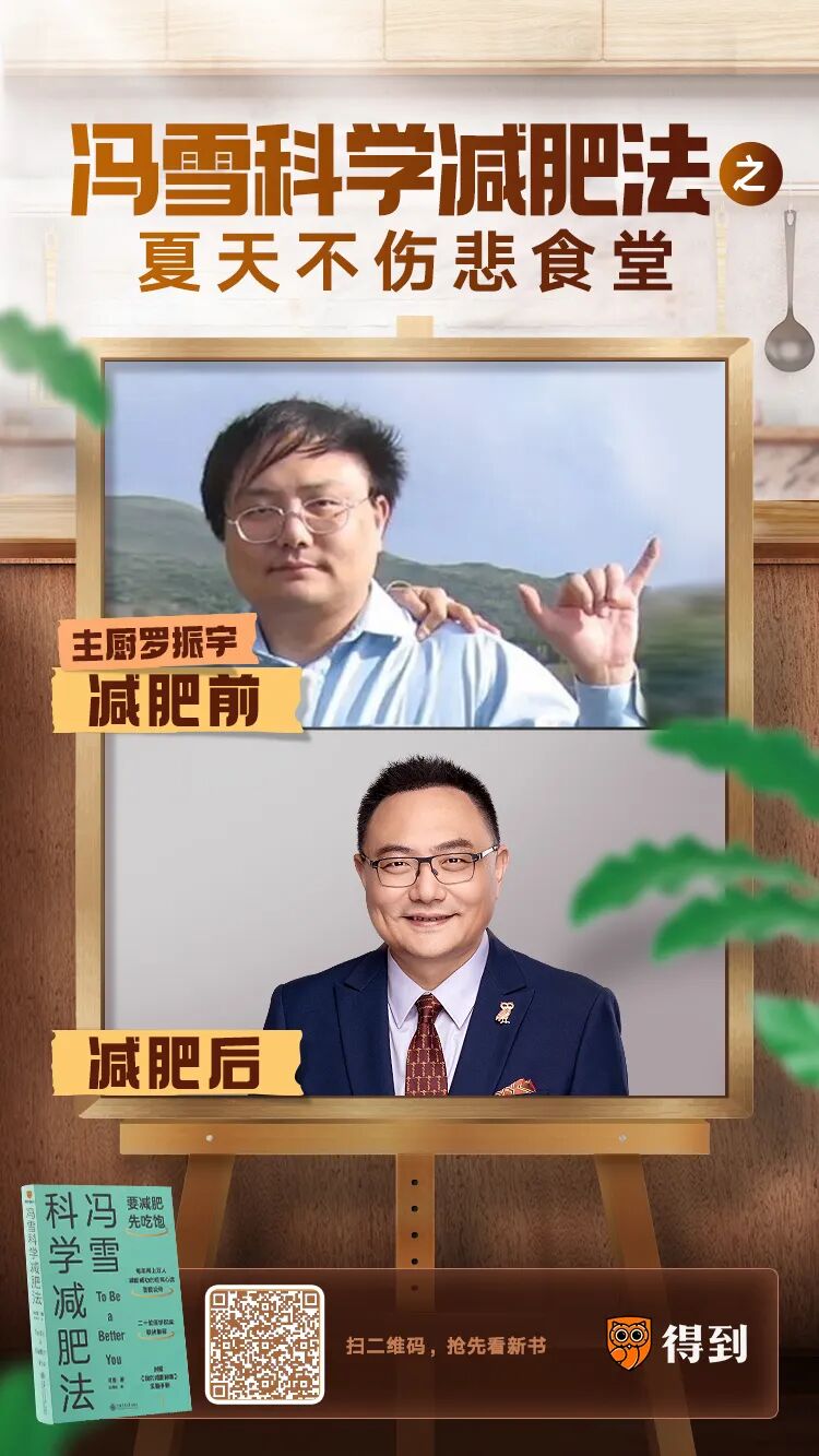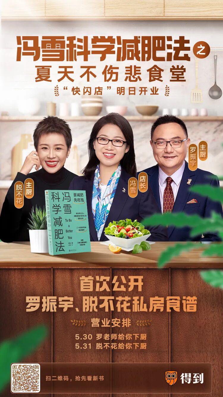 明天,冯雪老师要在得到开一家食堂,名叫“夏天不伤悲食堂”。还有两位特别“主厨”:罗胖和脱不花。他们将在这个特别的食堂等你,跟你分享各自的减肥故事。今年夏天,跟着《冯雪科学减肥法》,让自己轻松掉秤吧~
