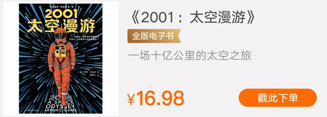 为你推荐阿瑟·克拉克的《2001:太空漫游》,它将带你用哲学的思考方式,来探究人类在宇宙的位置以及人类所能达到的极限。它把人类对太空的想象力发挥到了极致,连刘慈欣都盛赞不已。