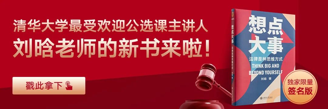 1. 这个周五上新,给你推荐刘晗老师的新书《想点大事》,副标题是“法律是种思维方式”。作者刘晗老师是清华法学院的博士生导师,在我们「得到」用户中是鼎鼎大名。