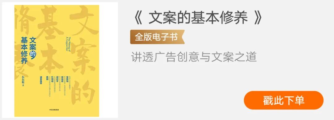 更多这样的见解,欢迎你查看《文案的基本修养》。一线营销广告创意者东东枪和你分享心得,从概念原理到作业细节,从创意方法到评判标准,一本书讲透广告创意与文案之道。