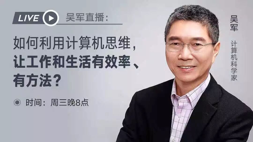 4. 今晚八点,在得到App的直播间,吴军老师会做一场直播,告诉你“为什么一定要学计算机思维”。欢迎你到时收看。