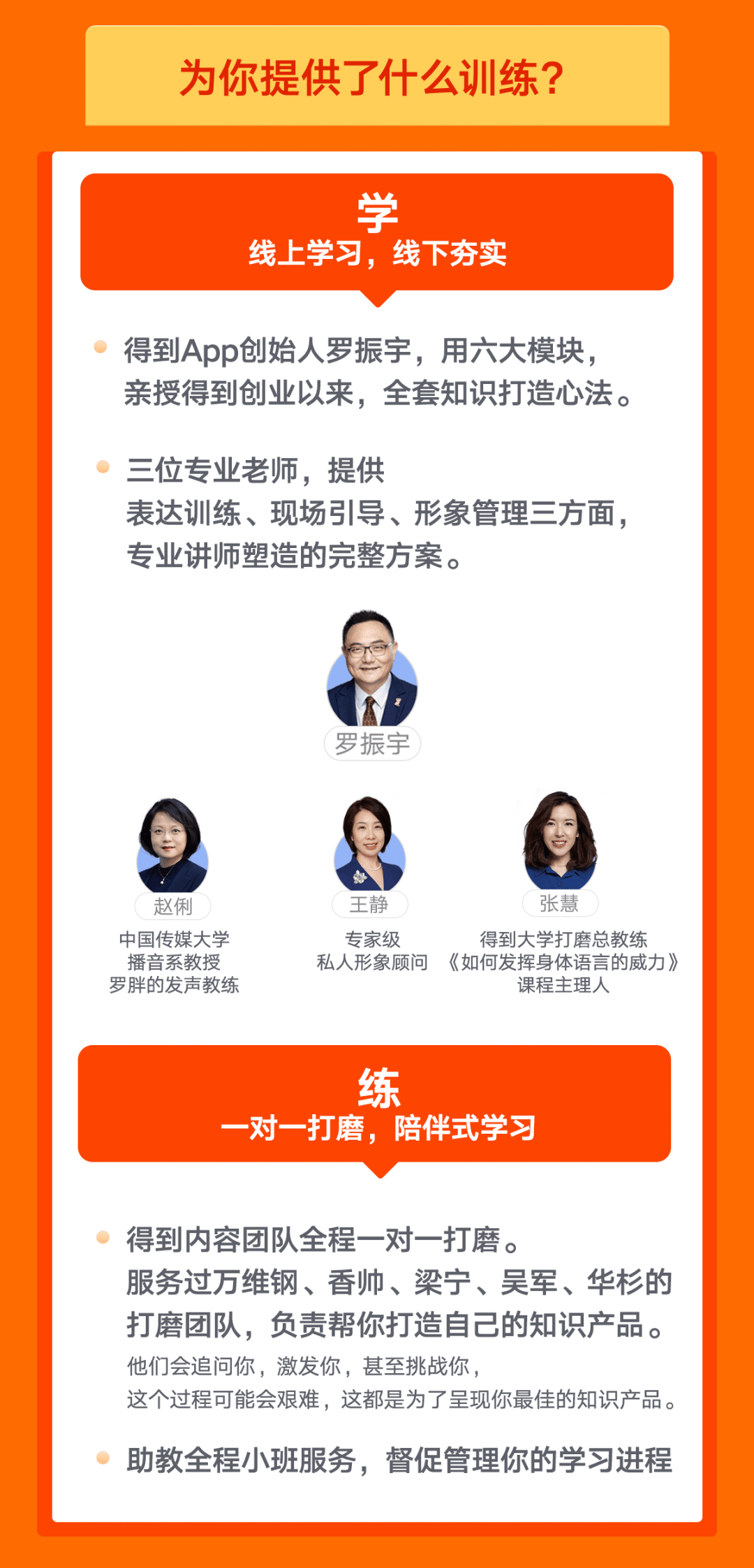 2. 怎样才能把一个人脑子里的知识变成一个有价值的产品呢,变成课程呢?对,这是我们摸索了几年的一套手艺啊。现在我们决定,用一个训练营的方式把它公开,也是想为我们「得到」请到更多更好的老师。
