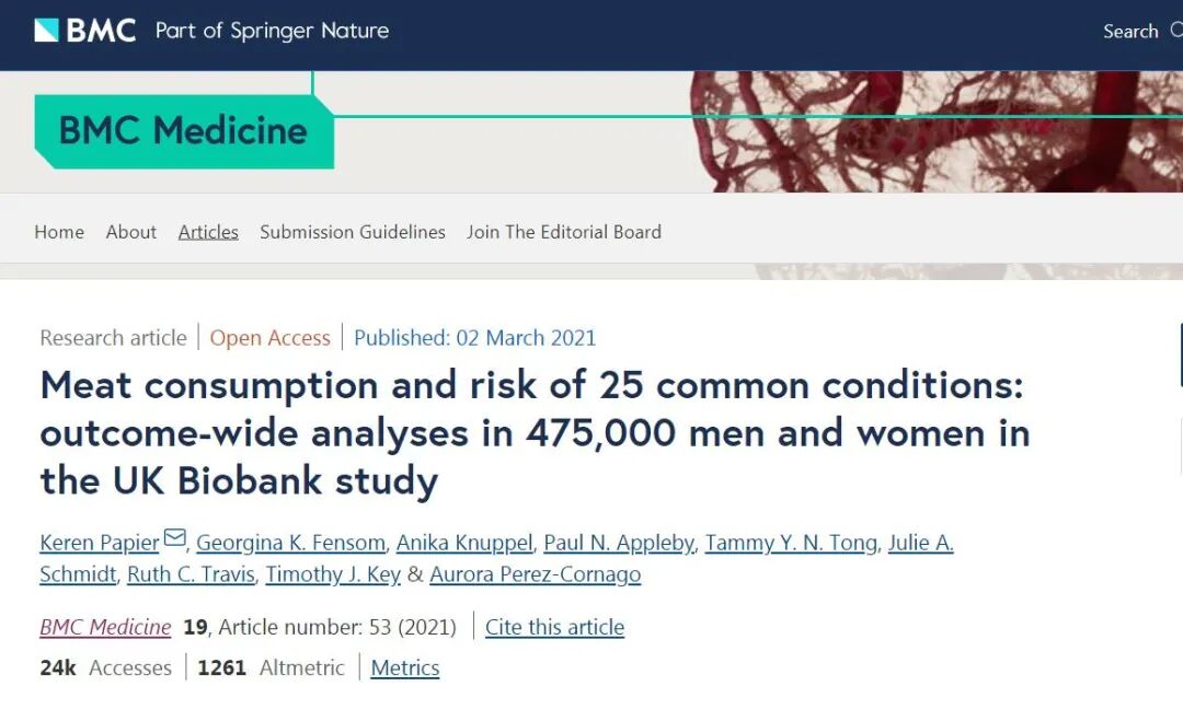 近期,牛津大学等研究人员发表一项研究发现,经常吃肉和25种常见疾病相关。