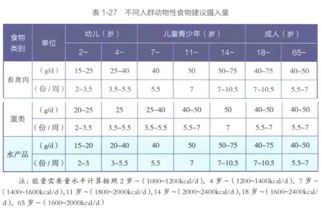 《中国膳食指南(2016)》对不同人群动物性食物也划出了推荐摄入量↓↓