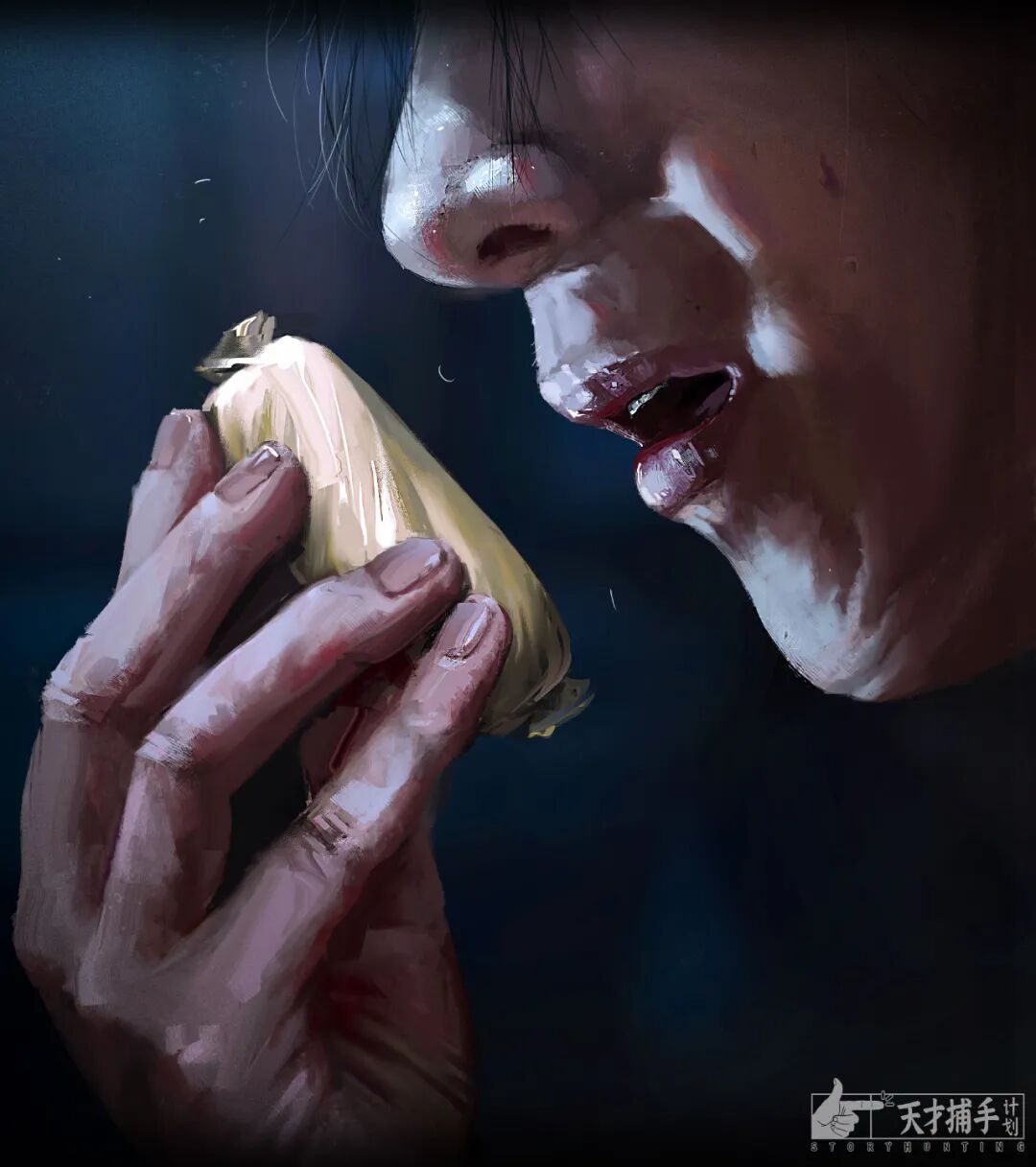 奶爸迟疑了几分钟,开始一手拿水,一手拿“脆皮肠”,硬生生往下咽,“呃呃”的打嗝声回荡在狭小幽暗的房间里,激起陈亚良一层鸡皮疙瘩。