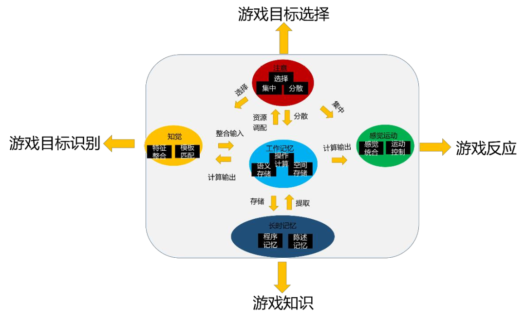 例如,你需要利用分散和集中注意力,观察敌人在什么位置、做什么,己方队友在什么位置、做什么等;需要利用长时记忆记住敌人和队友使用的英雄具有哪些主动和被动技能,以及游戏地图内有哪些战略资源和地形可以利用等。