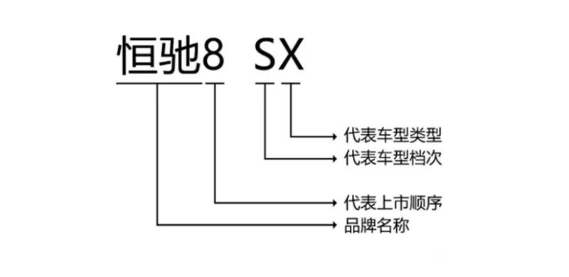 比如说恒驰推出的第8款车为SUV车型,市场售价为35万元,属于超豪华车型,则命名为恒8 SX。恒驰还很贴心地配了图来示意。