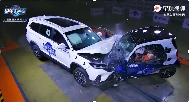 6月12日,中保研在B站上发布了一段对皓影的碰撞测试视频。在25%偏置碰撞测试中,皓影A柱弯折,中控台大面积溃缩到了驾驶室位置,实验假人的膝部和车内构件发生了明显碰撞,加上没有膝部气囊,整体伤亡惨重。