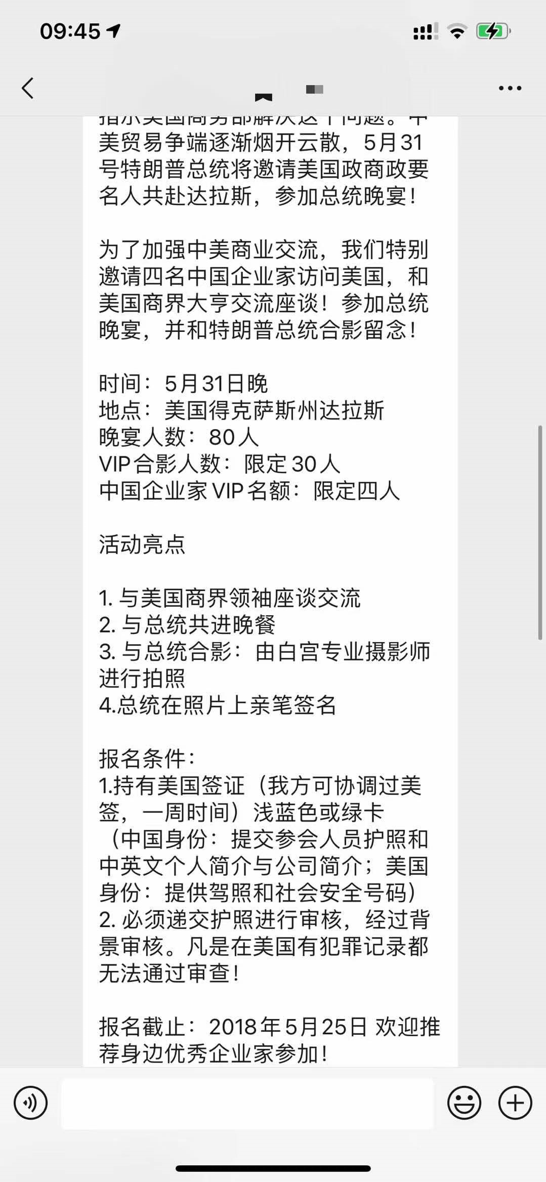 而且,虽然说是推荐“优秀企业家”参加,但报名条件里只有两条要求。一个是要有美国签证,一个是不能在美国有犯罪记录: