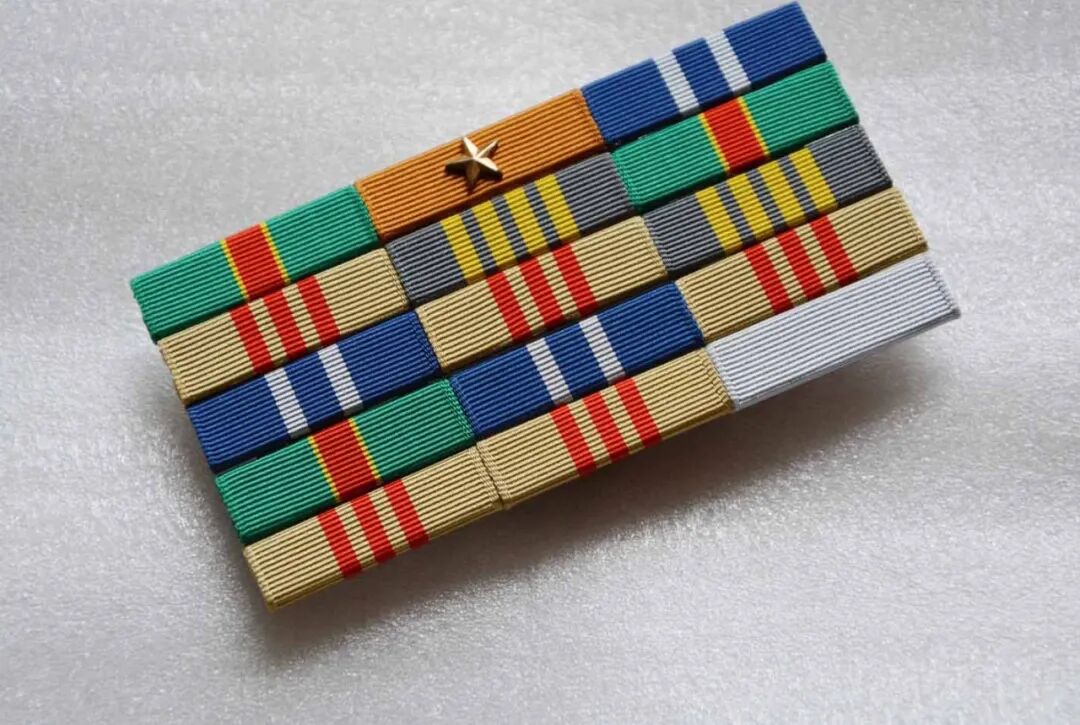 除了中国以外,美国也设计了“资历章”,不过在美军部队中他们将之称为“勋略表”,而通过勋略表人们能够大致知道军人们究竟获得过哪些勋章。美军勋略表的作用与我军资历章差不多,都是为了将军人们的荣誉展示出来。虽说两者的作用差不多,但相对于我国的资历章而言,美军的勋略表相对好得到一些。这是因为美军参与战争的机会很多,再加上美国对军功章的发放可谓是非常大方,这就致使很多美国军人的勋略表总是占据着军装上较大的位置。