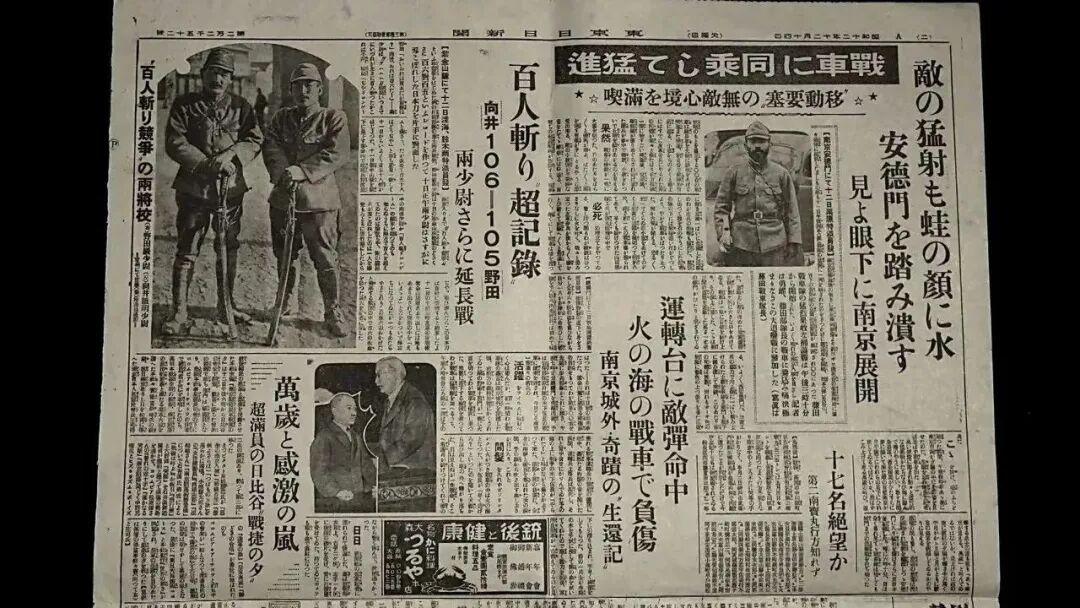 因此当那些尊崇武士道的日军到了中国,见到这些异族人时,会做出什么样的事情可想而知。在整个日军侵华战争中,最惨绝人寰的事情就是南京大屠杀,在这场屠杀中,我国至少有30万无辜百姓被无故杀害,而这30万的数字都还只是有记载可寻或找到尸骨后统计出来的,日军在南京造成的实际杀戮只会更多。而在南京大屠杀中,最知名的非组织性屠杀是日本军人野田毅和向井敏明的百人斩比赛。向井敏明和野田毅在日军大部队攻入南京城之前约定,在进入南京城后,二人进行所谓的“百人斩”比赛。