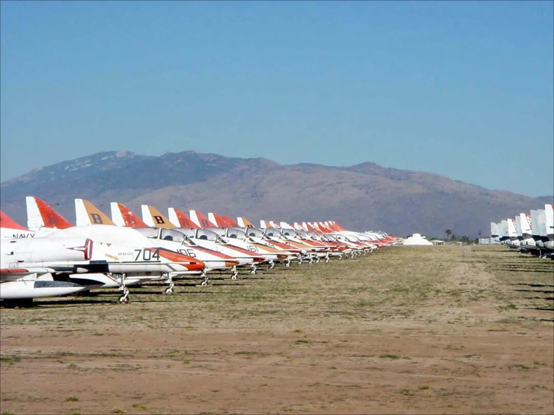 有一些还是目前美军现役的主力。这些停放在“飞机坟场”的飞机可不是简单的报废战机,它们有专人维护,而且大有用处。在平时,这些退役机身上的零件可以拆解供现役飞机使用,如果在战时,这些飞机还可以重新启用,成为一股不容小觑的空中力量。这种退役机的处理方式也影响到了我国,于是我国针对那些退役的旧型号战机,也建设了一个“飞机坟场”。