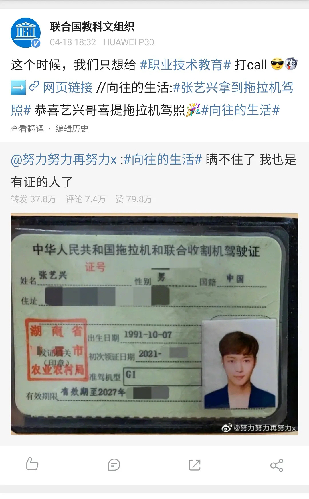 今天这个热搜真的有被沙雕到😂大明星开拖拉机,还考了96分😂 (追)持证上岗